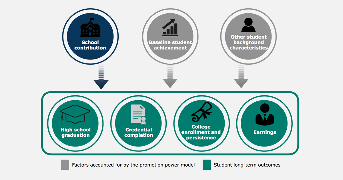 Figure 1. Promotion power measures separate schools’ contributions to students’ long-term outcomes from other factors